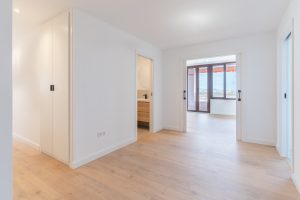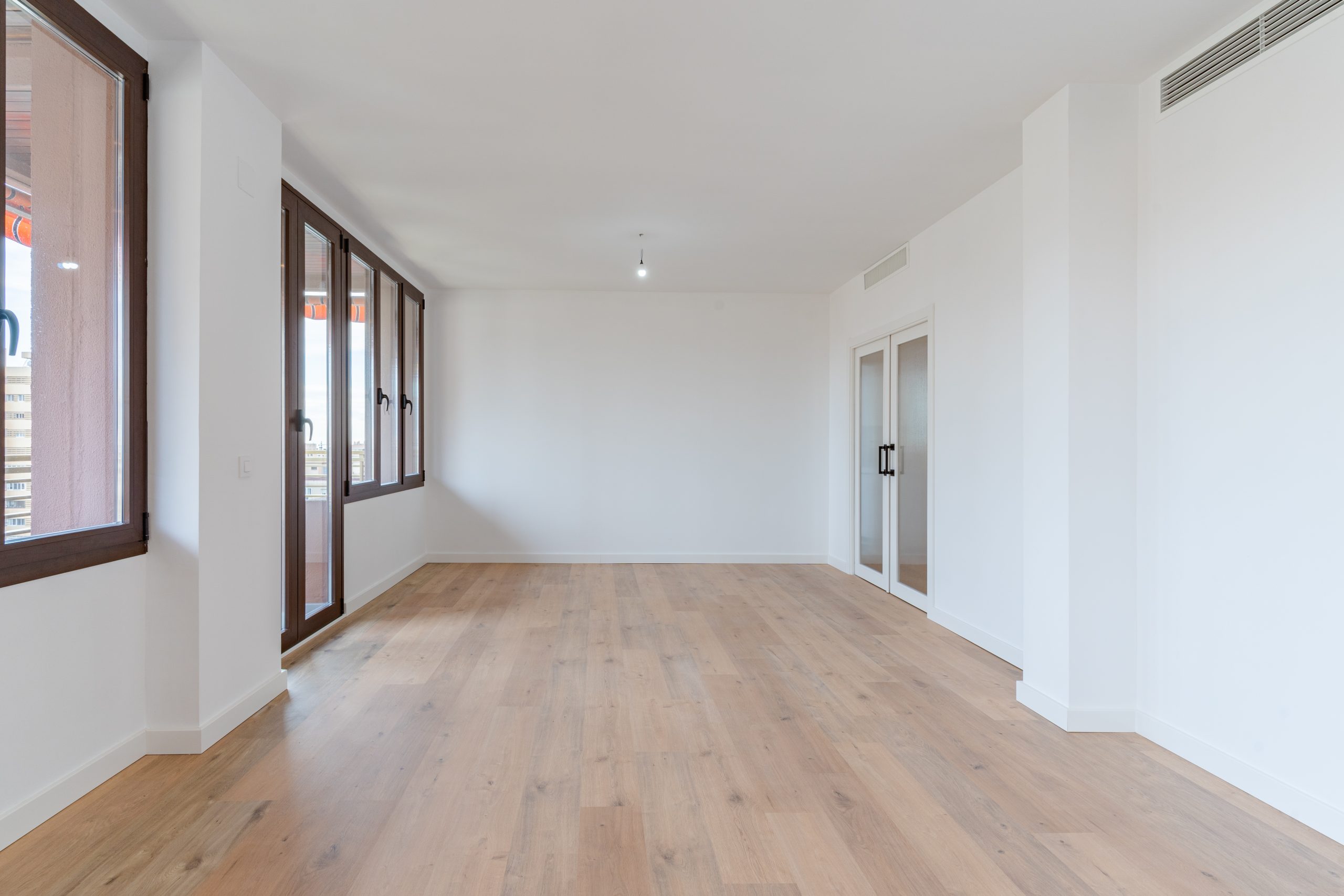 La vivienda es exterior y tiene una superficie de 188 metros cuadrados construidos, de los cuales 169 metros cuadrados son útiles. Cuenta con 4 dormitorios dobles con armarios empotrados, 3 baños: 2 completos (1 en suite) y 1 aseo en el recibidor, amplio salón con ventanales a la terraza con excelentes vistas con orientación este, recibidor, cocina independiente a medida totalmente equipada con muebles y electrodomésticos de la mejor calidad, plaza de garaje en el edificio de 17 metros cuadrados y terraza de 10 metros cuadrados. Las ventanas son de climalit tipo doble con rotura de puente térmico y las puertas de madera lacadas en blanco. Toda la vivienda tiene suelos de tarima y paredes blancas lisas.