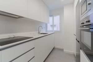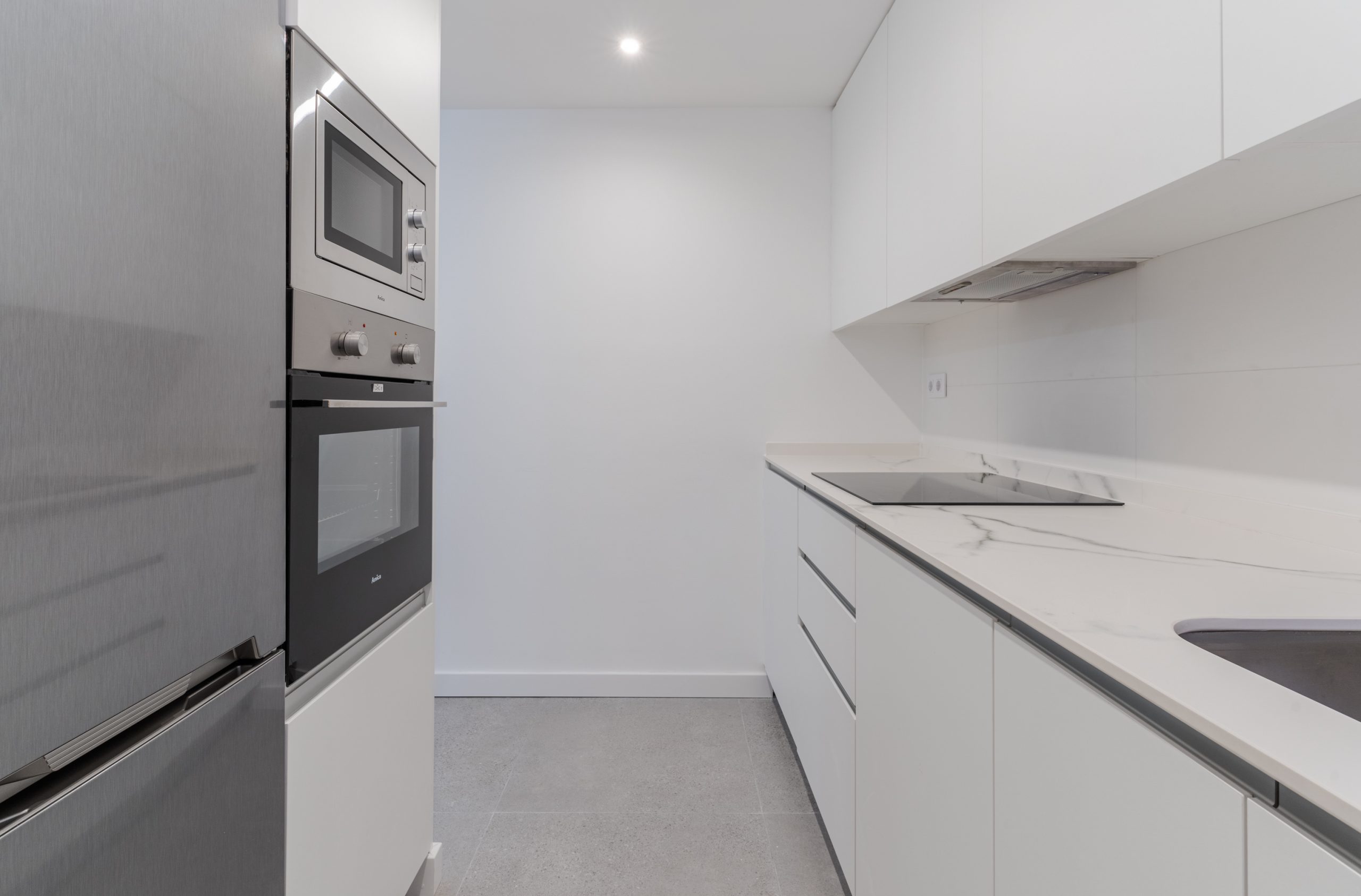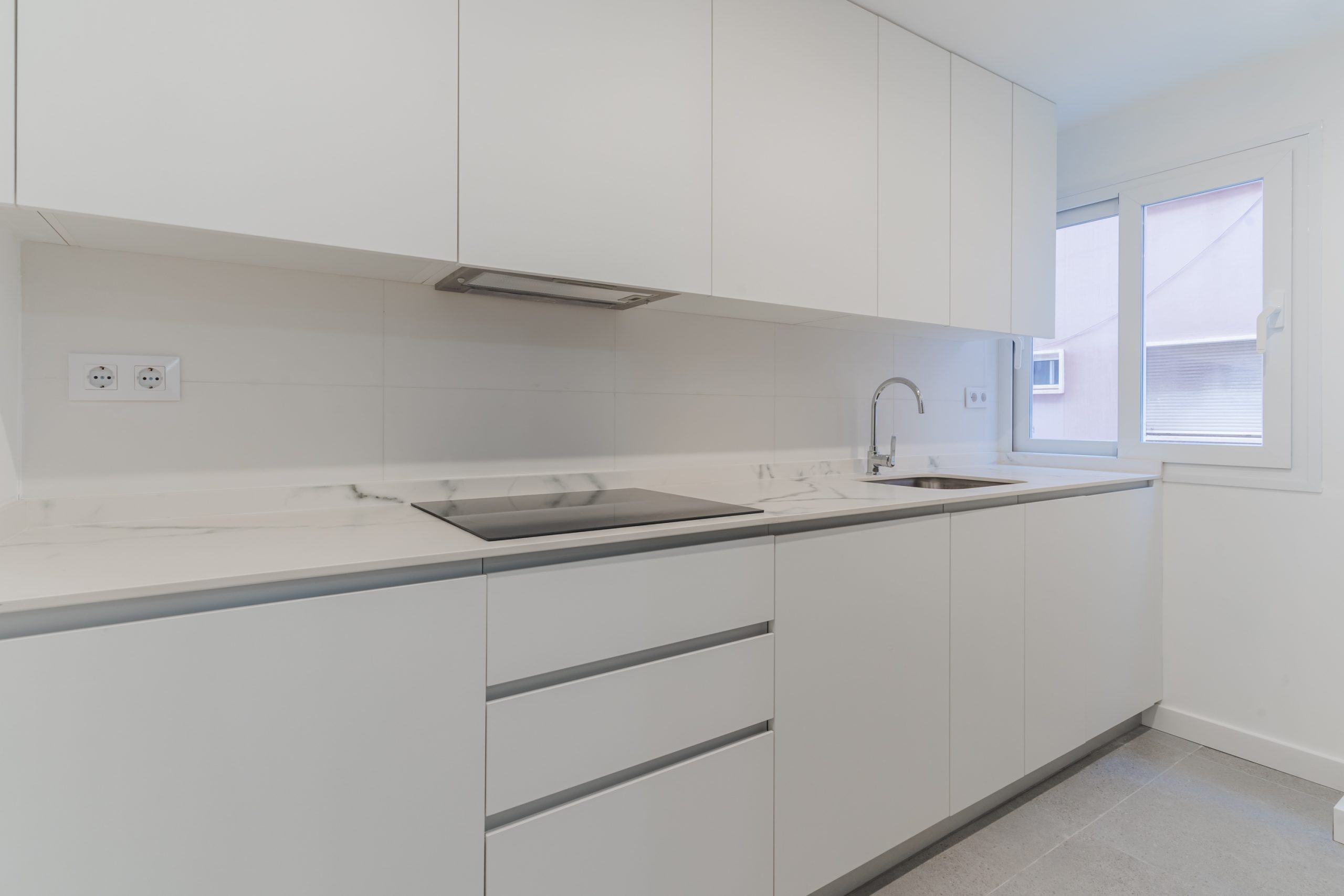 La vivienda es exterior y tiene una superficie de 70 metros cuadrados construidos, de los cuales 65 metros cuadrados son útiles. Cuenta con 2 dormitorios dobles con armarios empotrados, 1 baño completo, amplio salón-comedor y cocina independiente a medida totalmente equipada con muebles y electrodomésticos. Las ventanas son de climalit tipo doble con rotura de puente térmico y las puertas de madera lacadas en blanco. Toda la vivienda tiene suelos de tarima y paredes blancas lisas. La propiedad no cuenta con trastero y el acceso al edificio se encuentra adaptado para personas con movilidad reducida.
