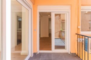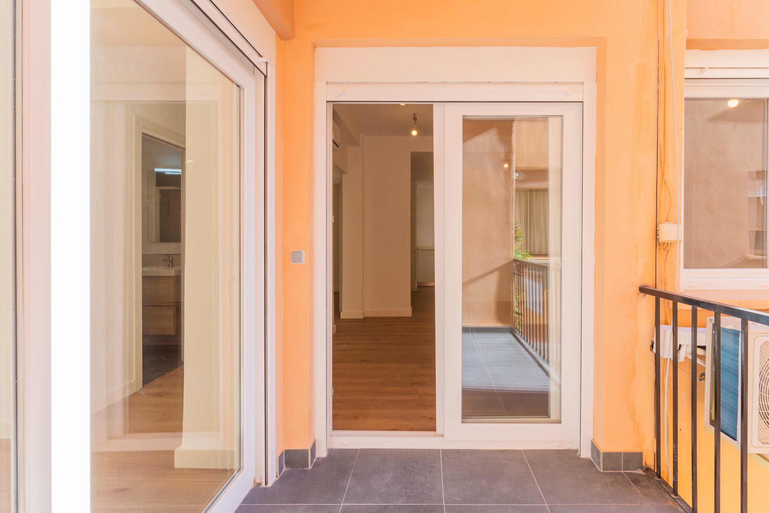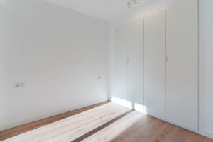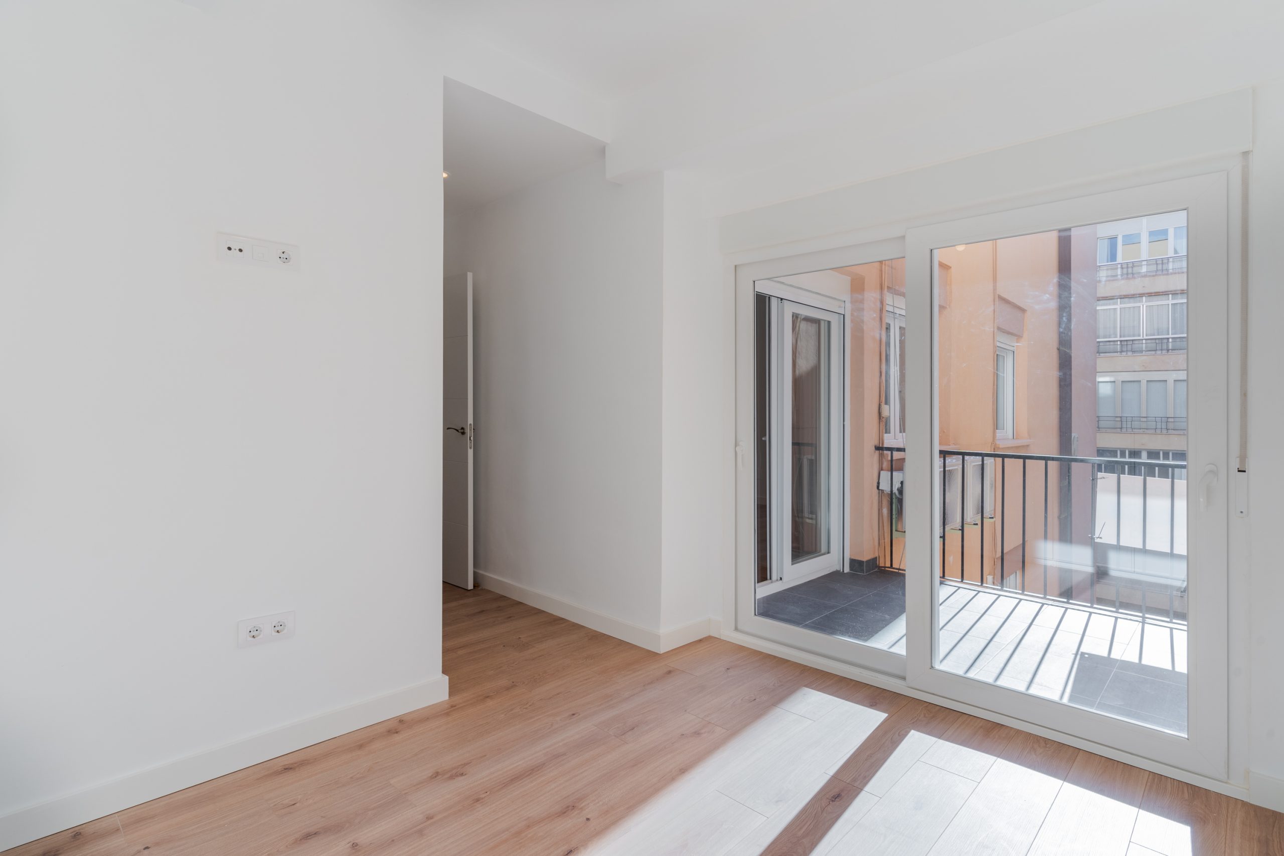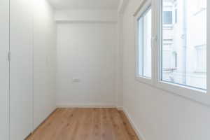 La vivienda es exterior (es un piso muy luminoso, ya que el sol da durante la mañana a todas las habitaciones que están en calle Pinzón) y tiene una superficie de 94 metros cuadrados construidos, de los cuales 85 metros cuadrados son útiles. Cuenta con 2 dormitorios dobles y 1 individual con armarios empotrados (hay 2 dormitorios exteriores y el individual da al patio mientras que el salón y la terraza dan a calle Pinzón), 2 baños completos (1 en suite), amplio salón-comedor y cocina abierta a medida totalmente equipada con muebles y electrodomésticos. Las ventanas son de climalit tipo doble con rotura de puente térmico y las puertas de madera lacadas en blanco. Toda la vivienda tiene suelos de tarima y paredes blancas lisas.